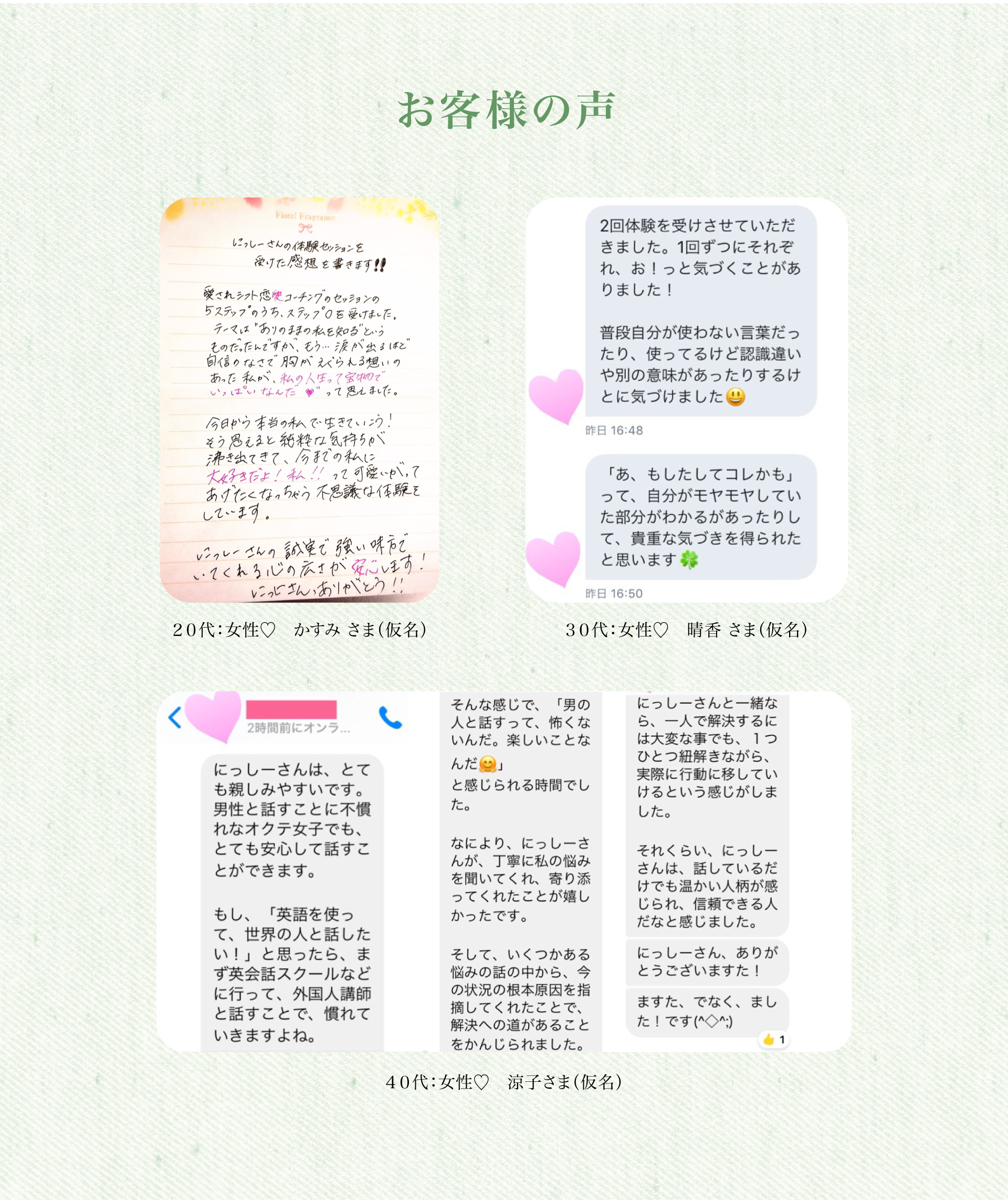 その後、結婚したいと思った恋人ができたが3年間で6回浮気をされた後略奪され極度のうつ状態へ。人間不信を経験した。30代になったときに ” 恋愛心理学 ” に興味を持ち始める。1年半の間、トライ&エラーを繰り返し再現性があり素敵な人から愛される他にはないオリジナル恋愛メソッドを確立!2018年3月よりとあるアーティストと心理学マスタートレーナーからイベントを共催しないかと依頼を受ける。相談者の悩みをよく聞いて難しい恋愛相談を解決する活動を開始!
